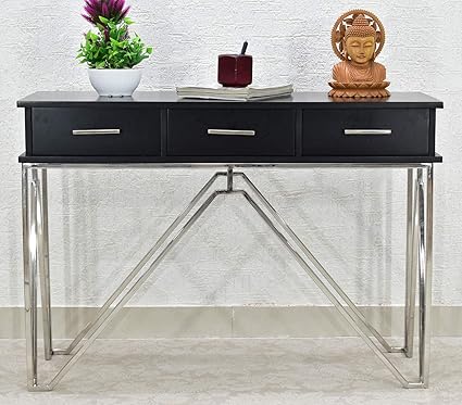 Samdecors Solid Mango Wood 3 Drawer Lamino Console Hall Table