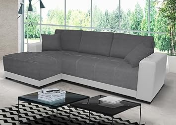 Black and grey corner sofa bed. Offering space comfort and contemporary style our grey corner sofas are distinctively designed big and bold and bang up to date. Storage space under the chaise longue.