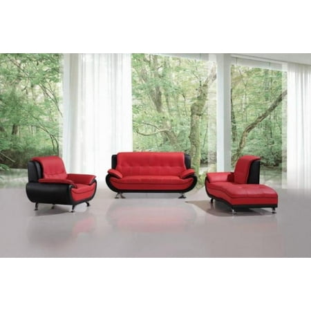 Frady 3 Pc Black And Red Faux Leather Moder Living Room Sofa Set