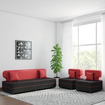 Bharat Lifestyle Tulip Fabric 3 1 1 Red Black Sofa Set Price