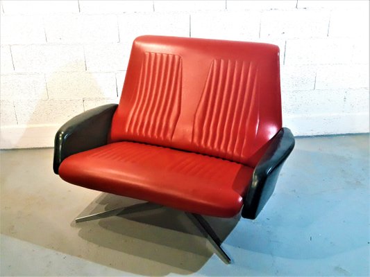 Mid Century Black And Red Leatherette Sofa For Sale At Pamono