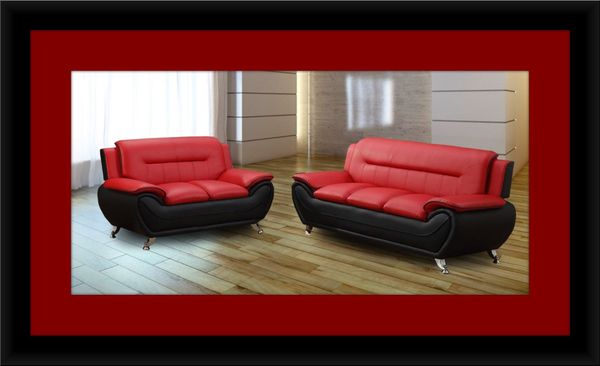 Amazing Deal On Modern Bonded Leather Sofa Set Black And Red 2 Piece