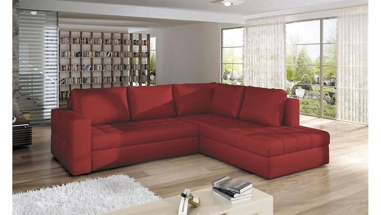 Stunning Red Leather Corner Sofa Bed Modern Living Room Furniture