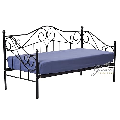 Furniture R France Black Metal Frame Slatted Steel Single Bed Sofa