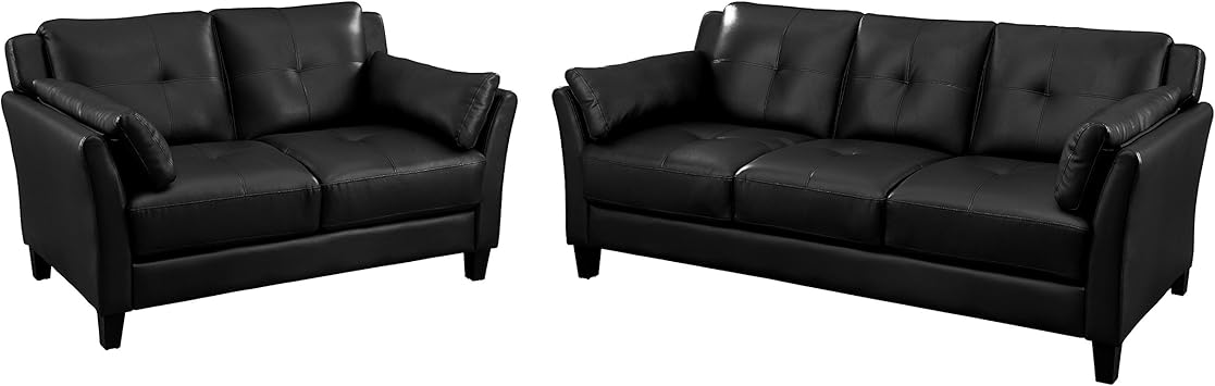 Corliving Club 2 Piece Tufted Bonded Leather Sofa Set In Black For