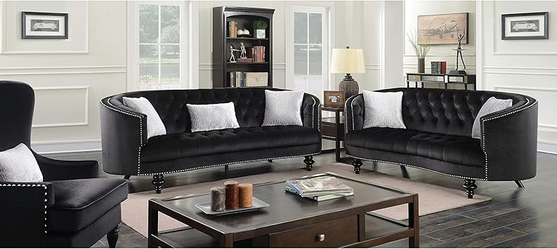 Coaster Ballard 2 Piece Pillow Top Sofa Set In Black 552021 S2