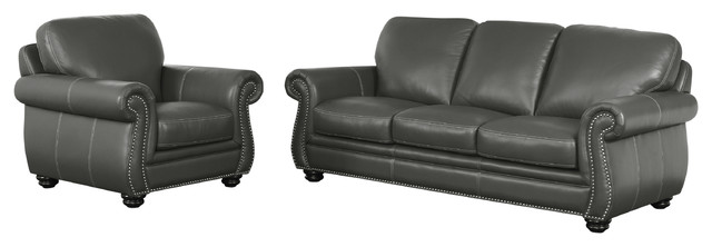 Abbyson Living Laurence Top Grain Leather 2 Piece Sofa And