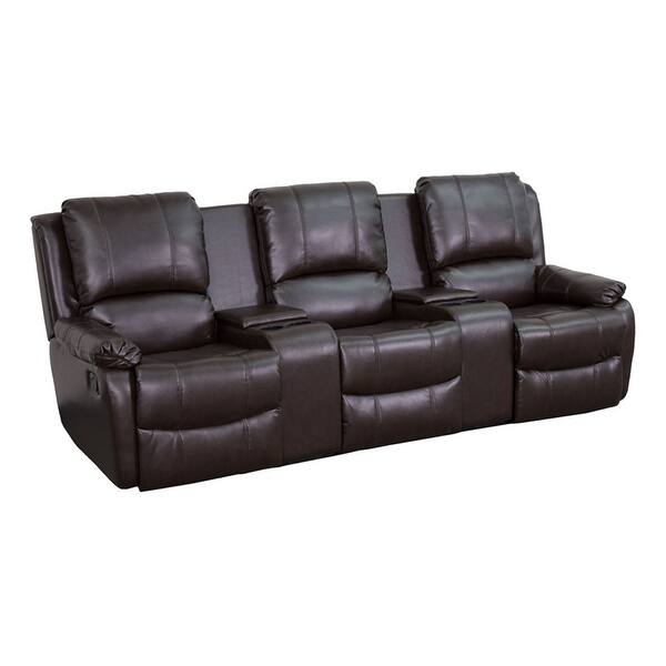 Shop Offex Brown Leather Pillowtop 3 Seat Home Theater Recliner