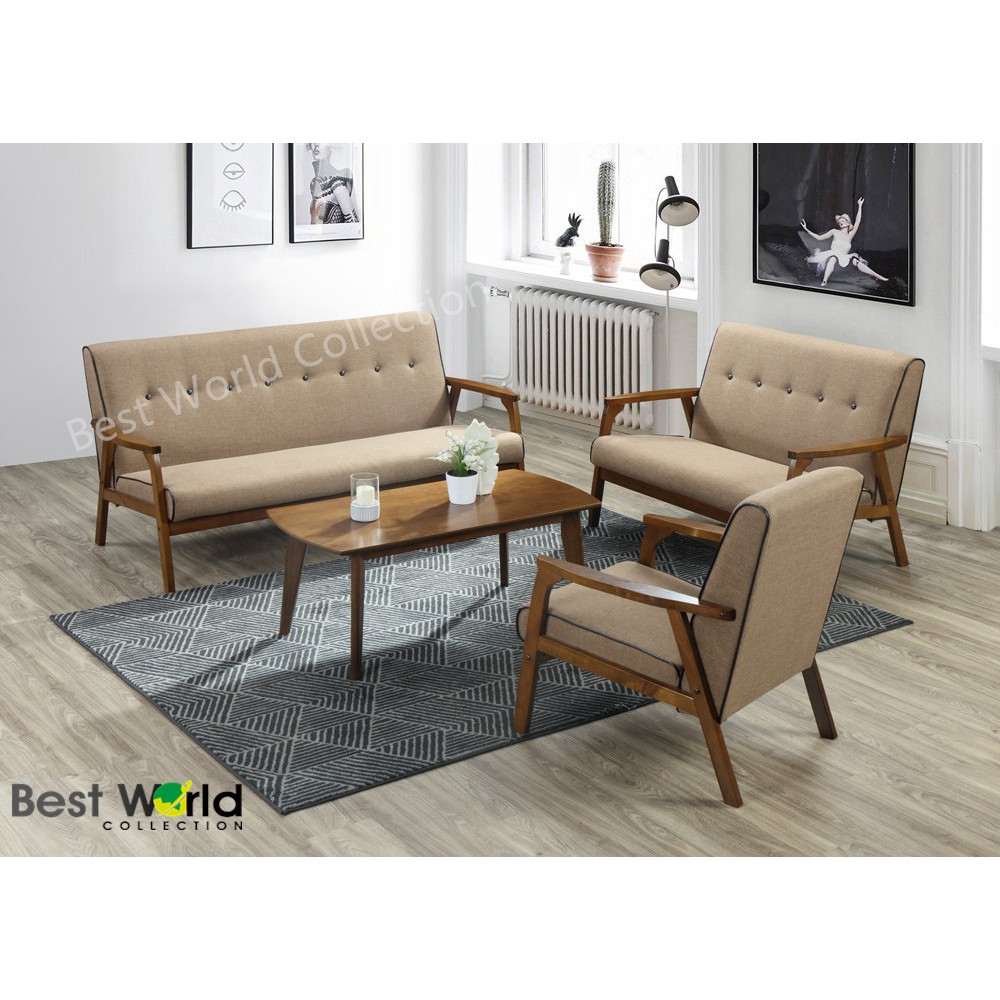 Best Aster Black Piping Wooden Sofa Set 1 2 3 Free Coffee Table