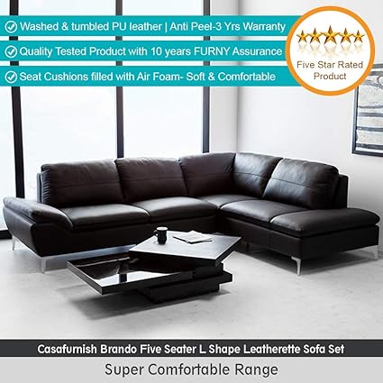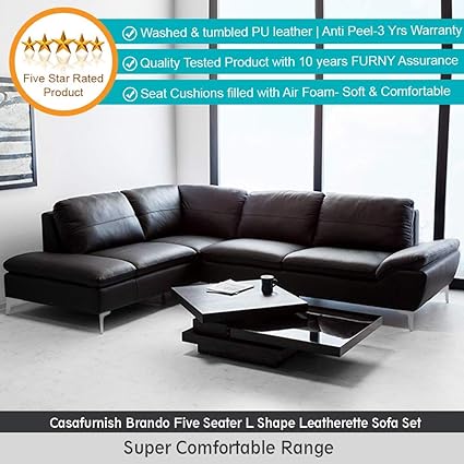 Furny Casafurnish 5 Seater Lhs L Shape Seat Cushions Filled With