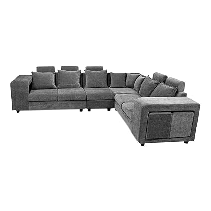 Adorn India Adillac 5 Seater Corner Sofa Left Side Handle Grey
