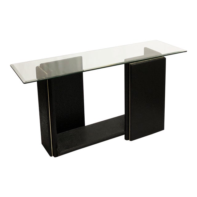1990s Post Modern Textured Black Lacquer Console Table Chairish