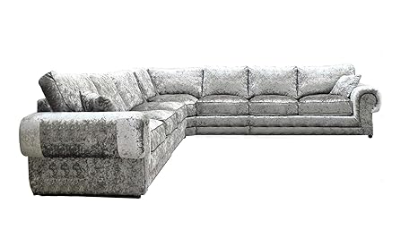 Lara Large 7 Seater Full Silver Crushed Velvet Cheap L Shaped