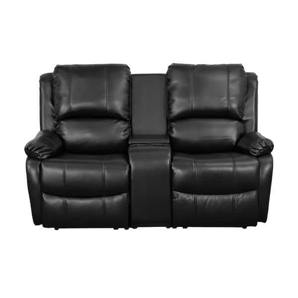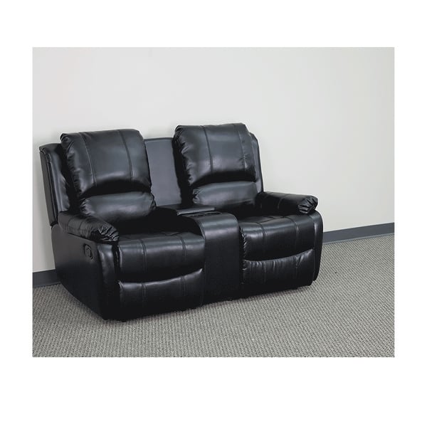 Shop Offex Black Leather Pillowtop 2 Seat Home Theater Recliner