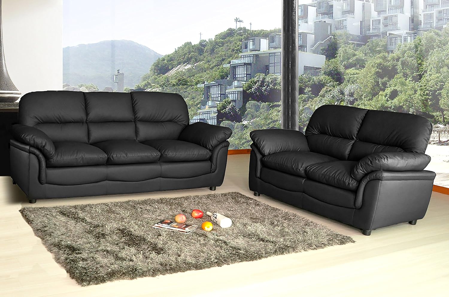Black Leather Sofas 3 Seater And 2 Seater Amazon Co Uk