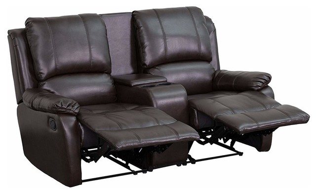 Contemporary 2 Seat Reclining In Leather With Cup Holders For