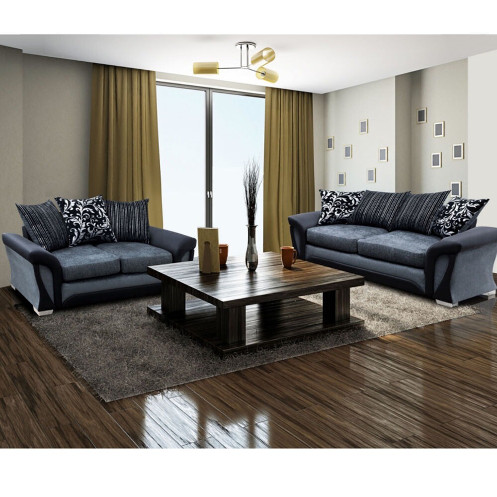 Camden Fabric Sofa Suite 3 And 2 Seater Grey And Black