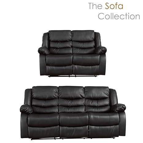New Chicago Recliner Bonded Leather Sofa Suite In Black 3 2 1
