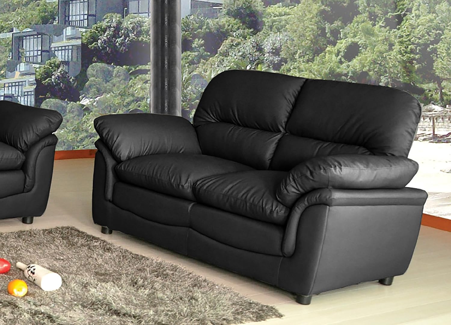 Annaghmore Queensbury 2 Seater Black Faux Leather Sofa Suite