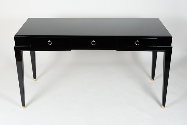 Black Desk With Brass Feet Glass Top 1930s For Sale At Pamono