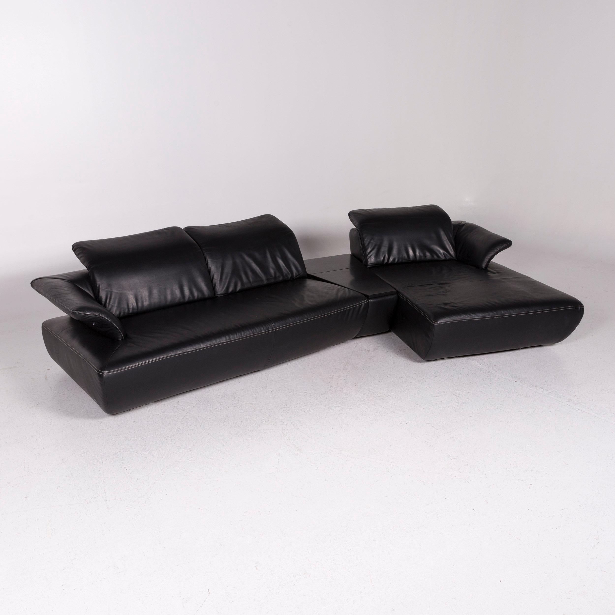 Koinor Avanti Leather Corner Sofa Black Sofa Includes Console