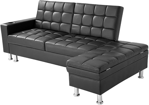 Brand New Corner Sofa Bed With Storage Top Quality Black Faux