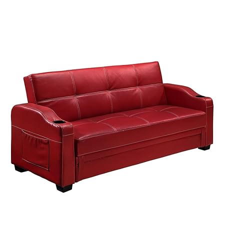Storage Sofa Bed With Cupholders Black Brown White Red Faux