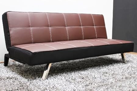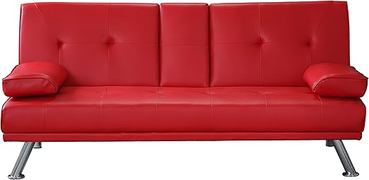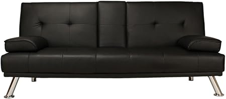 Pul Clic Clac Sofa Bed 3 Seater Faux Leather Sofa Drink Holder