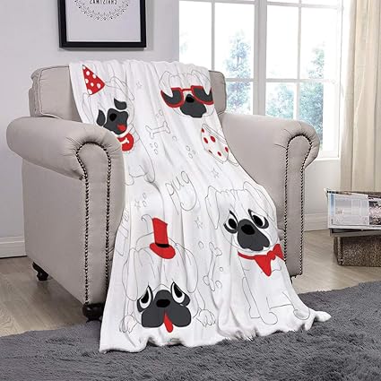 Light Weight Fleece Throw Blanket Pug Dogs In Various States Sad