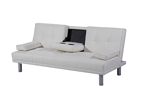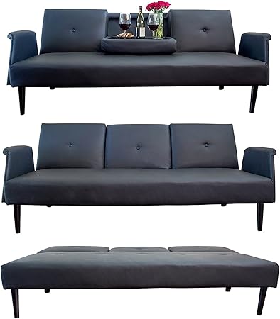 Amazon Com Leather Futon Sofa Bed With Tray And Cup Holders