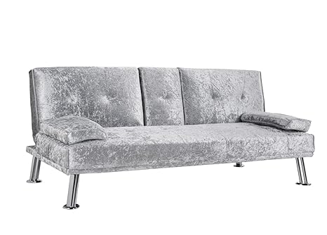 Crushed Velvet Fabric Silver Black Sofa Bed Cupholder 3 Seater
