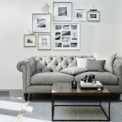 Stone Grey Suede Buttoned 2 Seater Sofa Rockett St George