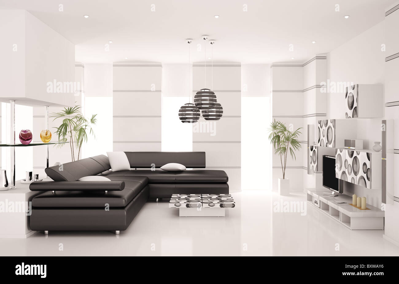 Modern Living Room With Black Sofa And Lcd Interior 3d Render