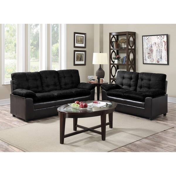 Living Room Plush Cushion Tufted Sofa And Loveseat Black