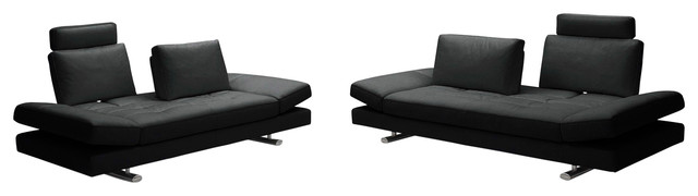 Modern Black Leatherette 2 Piece Easton Sofa Set With Stainless