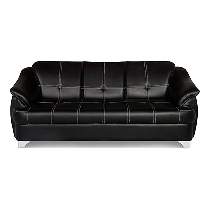 Buy Chelsea Leatherette Three Seater Sofa In Black Colour By