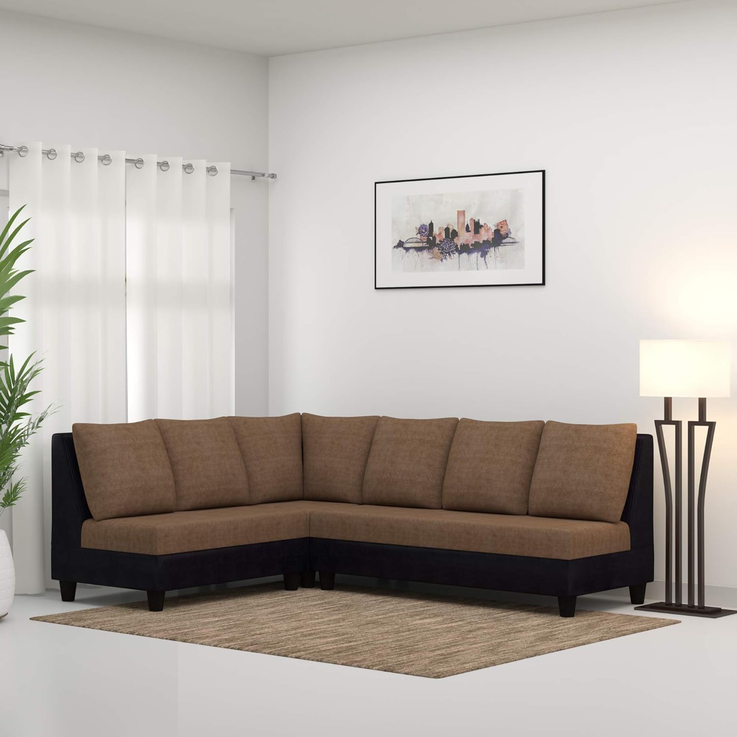 Furny Daisy 6 Seater L Shape Sofa Camel Black Amazon In