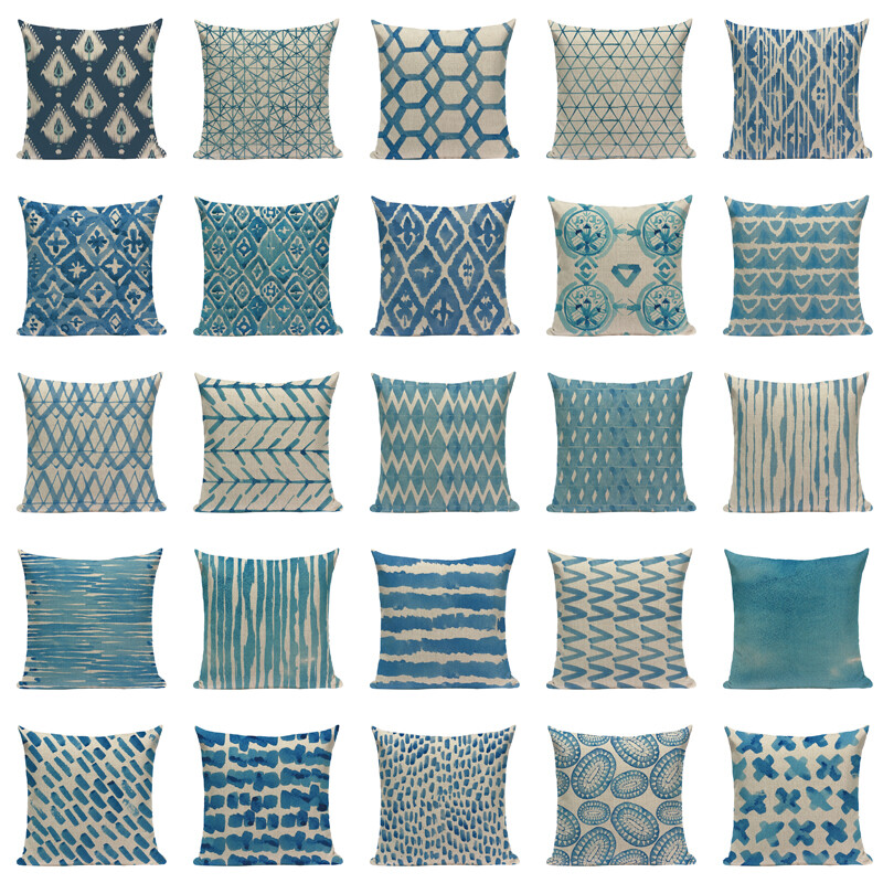 Uk Blue Cream Cushion Covers Denim 17 X17 Fashion Nordic Home