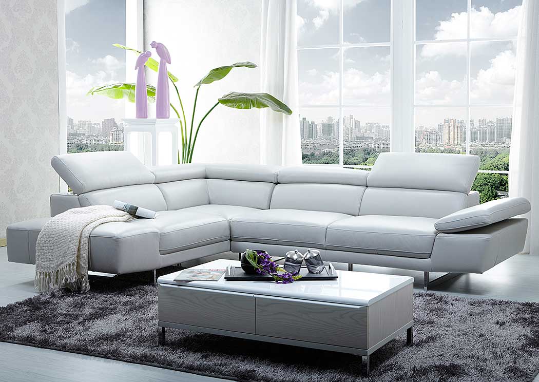 625 Modern Top Grain White Black Or Grey Italian Leather Sectional
