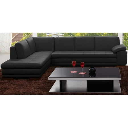 Modern Premium Black Top Grain Italian Leather Sectional Sofa Left