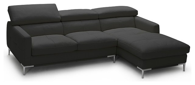 J M 625 Modern Premium Black Top Grain Italian Leather Sectional
