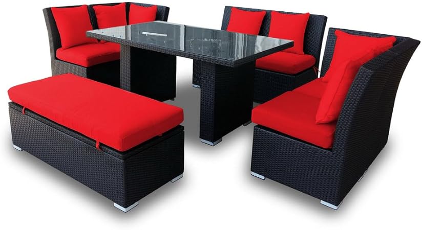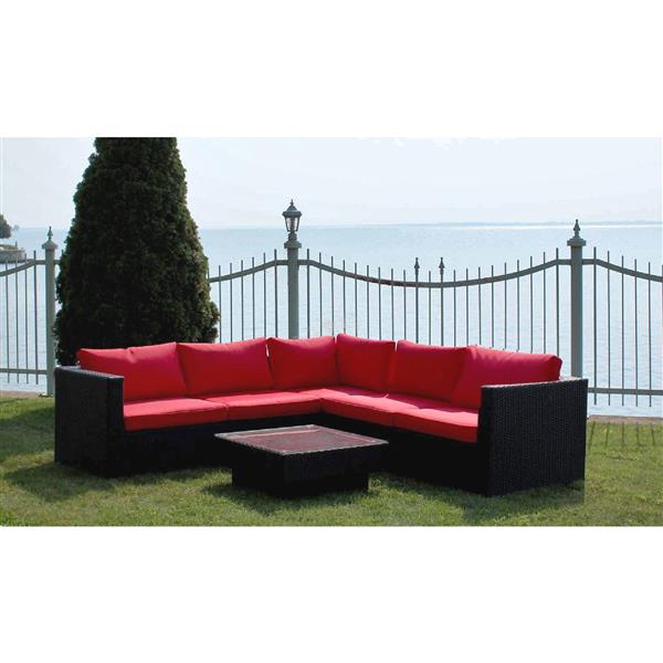 Henryka 6 Piece Outdoor Sofa Set With Black Red Cushions Lxf