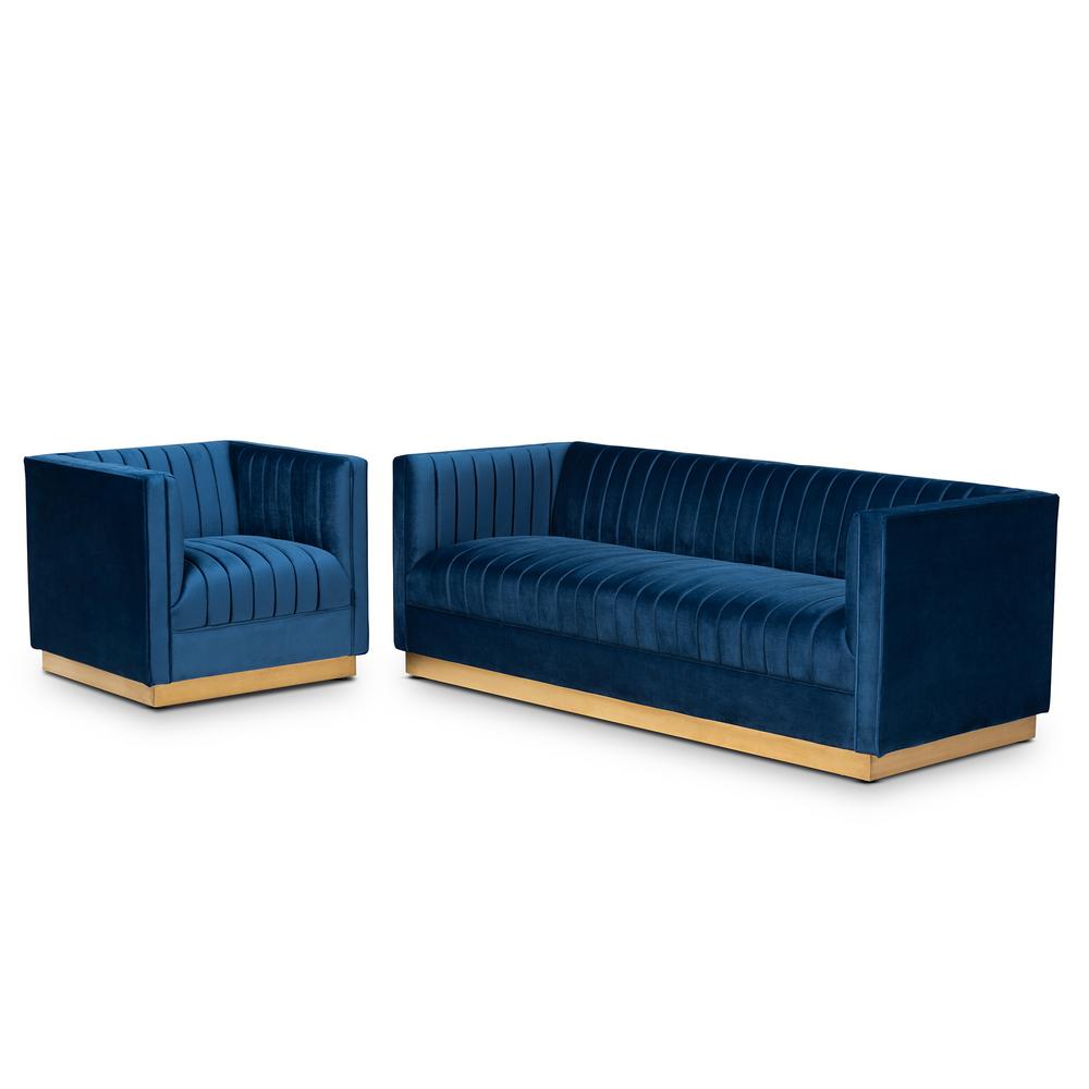 Baxton Studio Zanetta 2 Piece Royal Blue And Gold Living Room Set