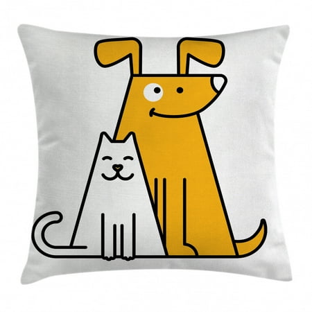 Cartoon Throw Pillow Cushion Cover Cats And Dogs Human Best