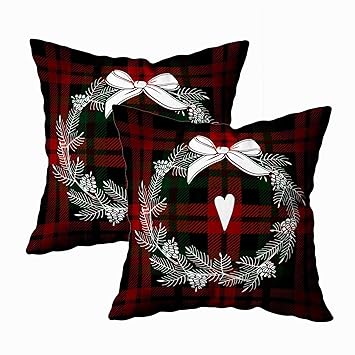 Best Promo 2bf6 Christmas Red And Black Plaid Throw Pillow Case