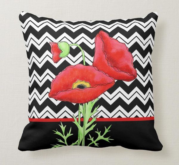 Throw Pillow Case Red Poppy Black White Zigzag Chevron Decorative