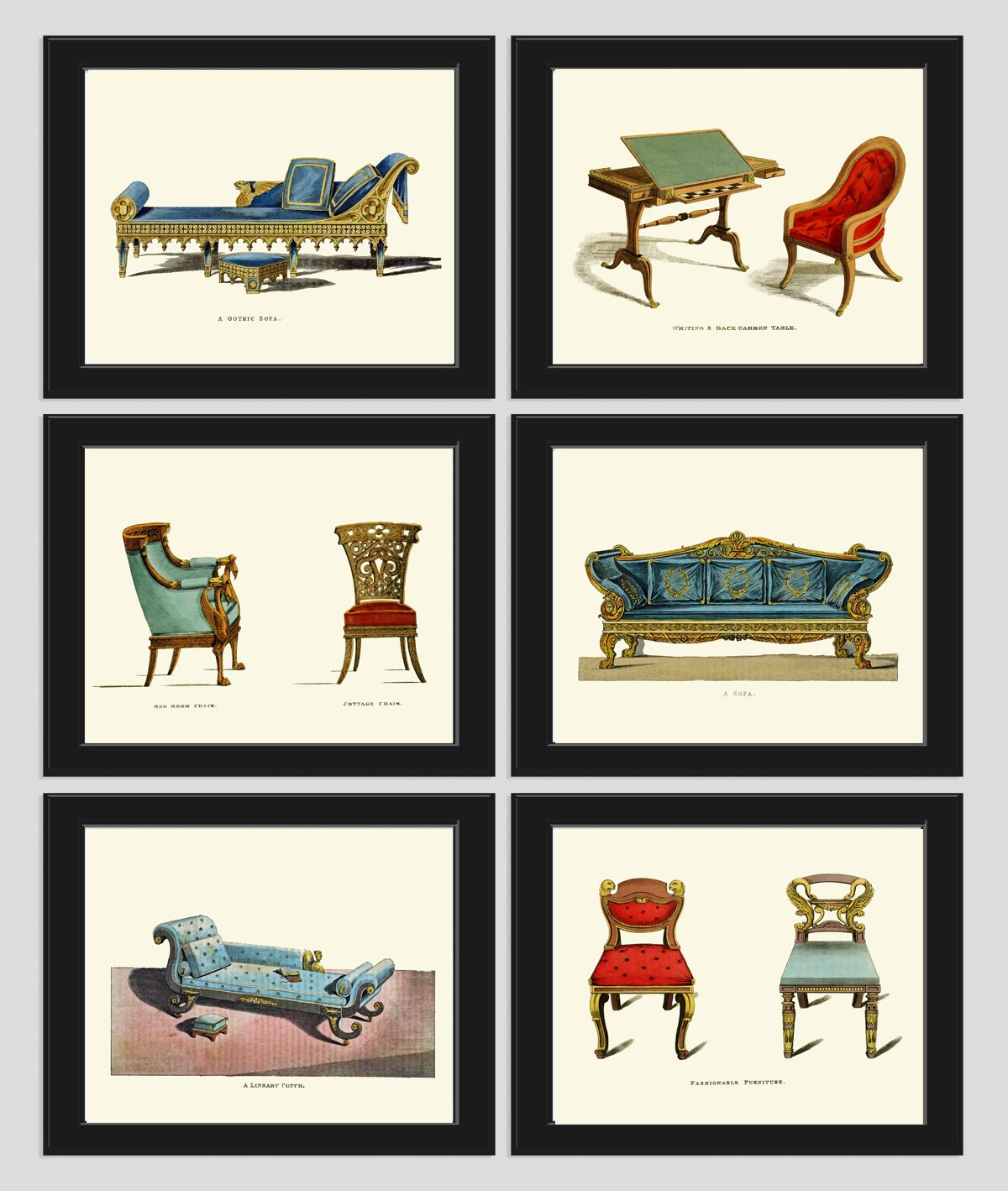 Amazon Com Blue Red Sofa Chair Antique Furniture Print Set Of 6