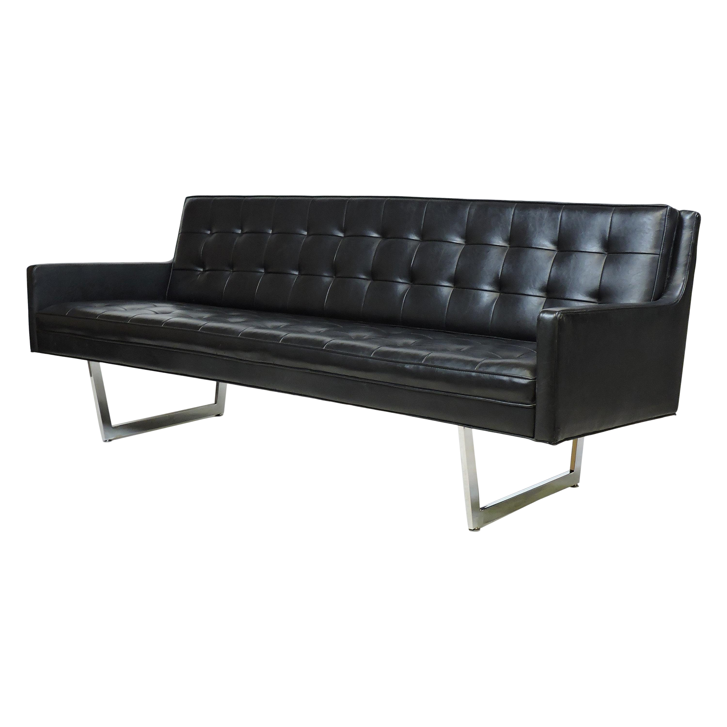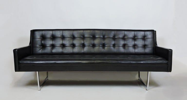 Mid Century Modern Patrician Chrome Sled Base Tufted Sofa For Sale