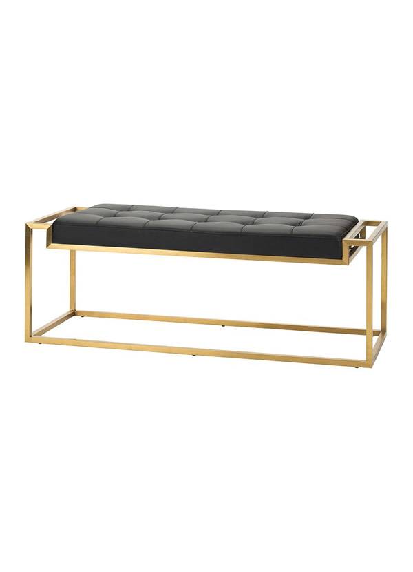 Celia Occasional Bench In Black Naugahyde Top And Brushed Gold