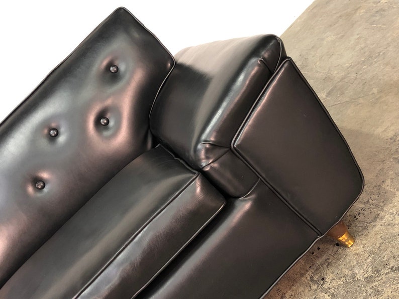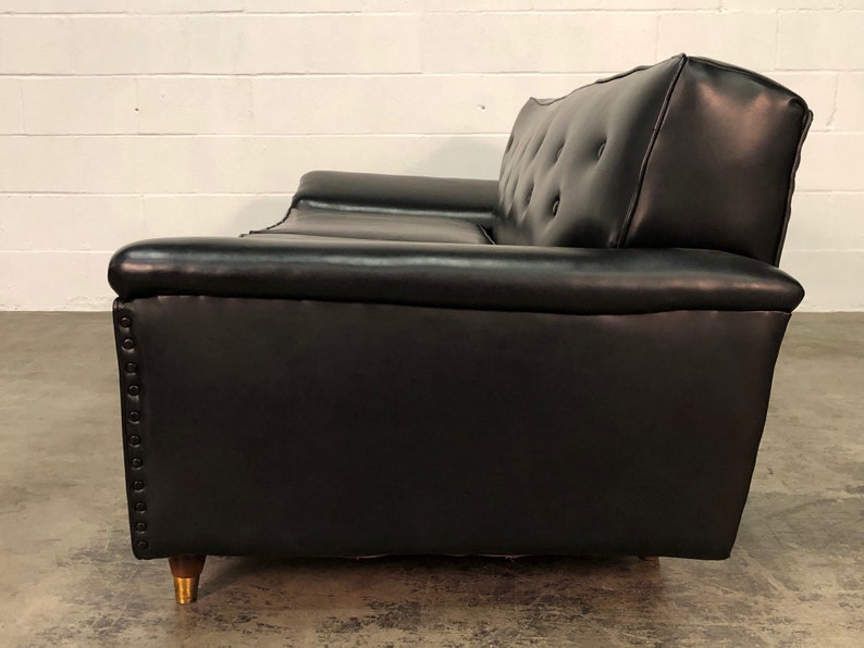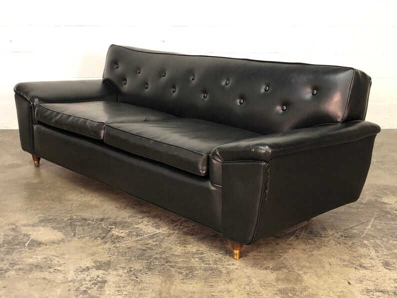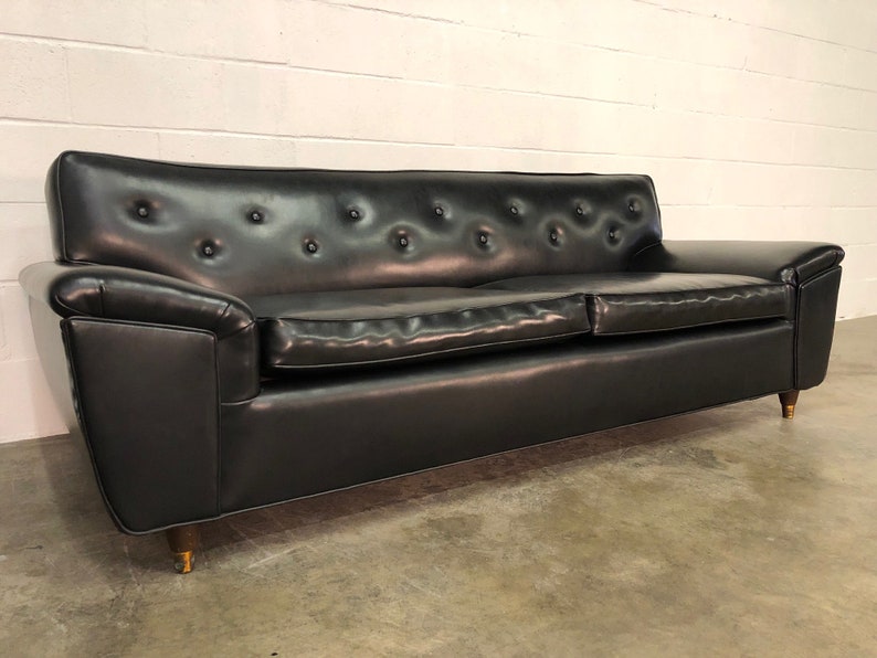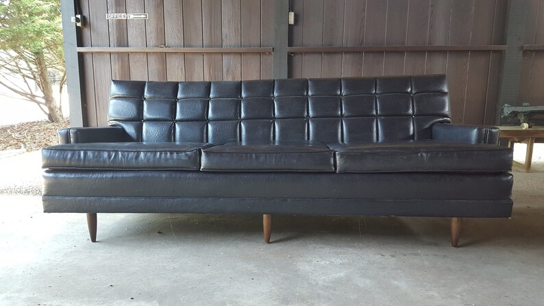 Awesome Vintage Mid Century Modern Sofa Black Naugahyde Etsy